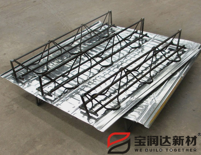 寶潤(rùn)達(dá)鋼筋桁架樓承板是將樓板中的鋼筋在工廠采用進(jìn)口設(shè)備加工成鋼筋桁架,并將鋼筋桁架與鍍鋅鋼板在工廠焊接成一體的組合模板,能輕松地完成雙向板施工及使用,而普通的壓型板下皮 垂直于肋方向鋼筋無法布置。