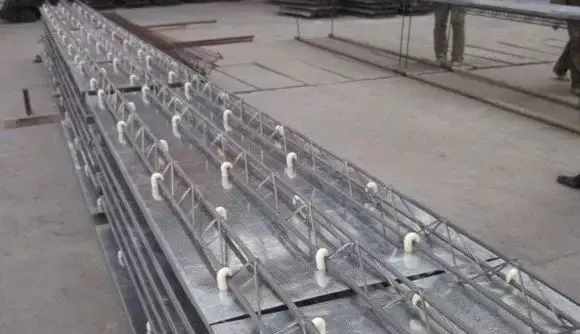 裝配型:桁架與底板分開,現(xiàn)場(chǎng)組裝;桁架可按建筑要求生產(chǎn),但底板為統(tǒng)一規(guī)格,在現(xiàn)場(chǎng)組裝時(shí)再根 據(jù)施工要求進(jìn)行拼接。