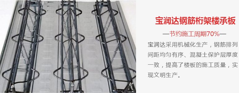 寶潤(rùn)達(dá)生產(chǎn)的“鋼筋桁架樓承板”對(duì)比“傳統(tǒng)裝配型樓承板”具有更便捷、更省力、更有效的優(yōu)勢(shì)。該產(chǎn)品得到廣泛運(yùn)用,特別是在多高層鋼結(jié)構(gòu)領(lǐng)域中,標(biāo)準(zhǔn)型鋼筋桁架樓承板有著不可代替的作用。